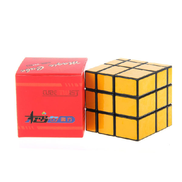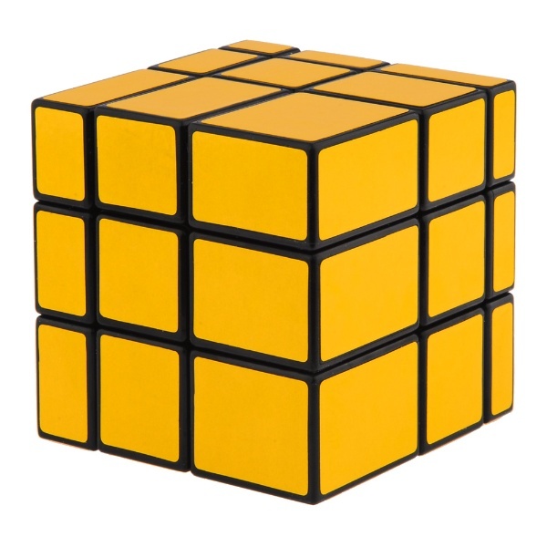 The CubeTwist Mirror Blocks Cube is a twisty puzzle in the shape of a cube. Instead of distinguishing pieces by colour and type. Each block of the puzzle is the same mirrored yellow, but each row is a different size. What this means to you is: it's gets really weird looking really fast. Enjoy!