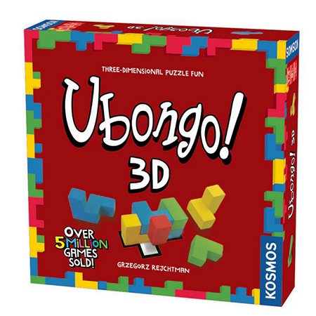 Stretch your mental muscles into the third dimension! In this version of Ubongo, the hit puzzle game, players race to place three-dimensional blocks so they fit perfectly in a specific area on a puzzle card and completely fill a designated three-dimensional space. Each time you win, you collect colorful plastic gems; the player with the most valuable collection of gems at the end of the game wins.